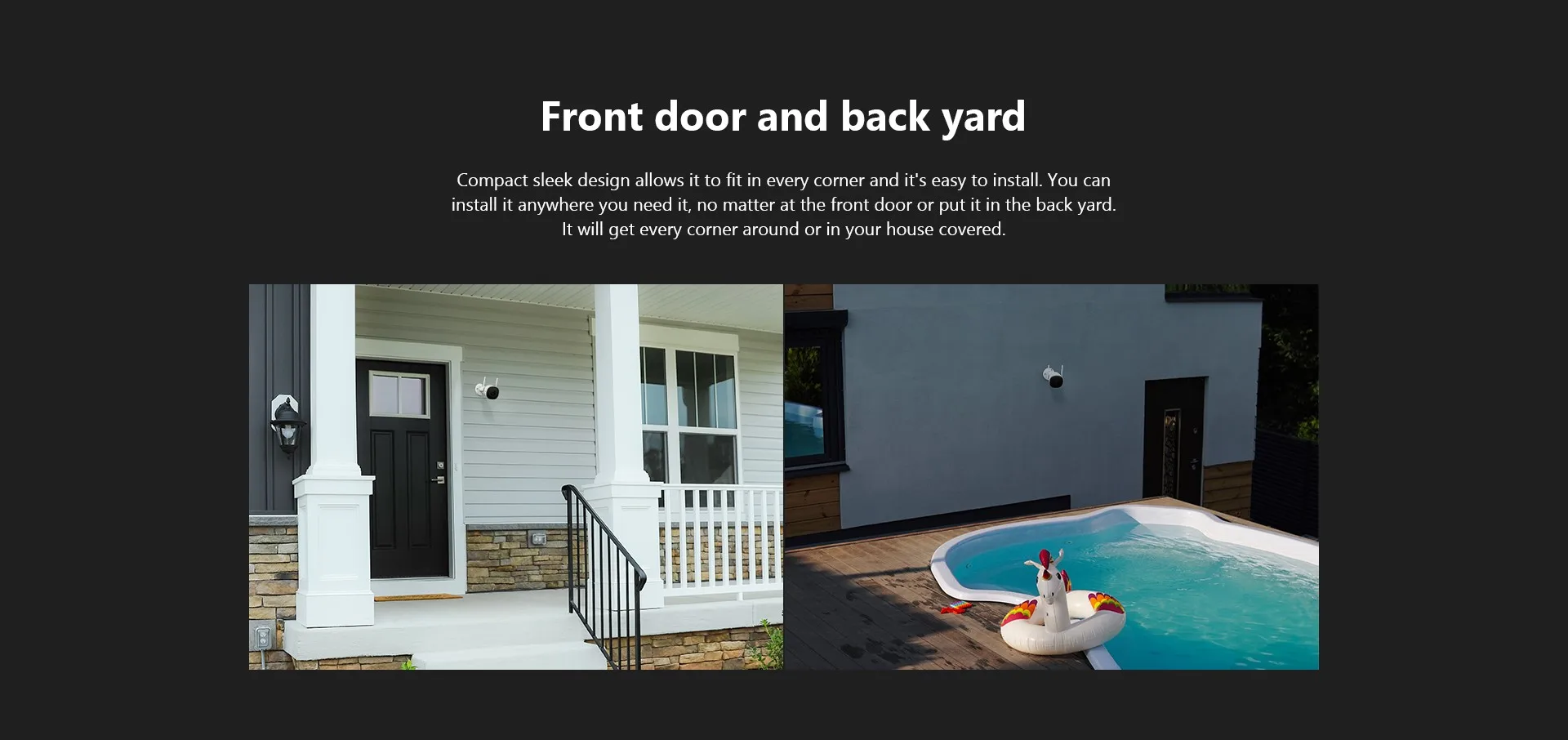 تصميم مدمج وأنيق يسمح بوضعه في كل زاوية وهو سهل التركيب. يمكنك تثبيته في أي مكان تريده ، بغض النظر عن الباب الأمامي أو وضعه في الفناء الخلفي. سيغطي كل ركن حولك أو في منزلك.